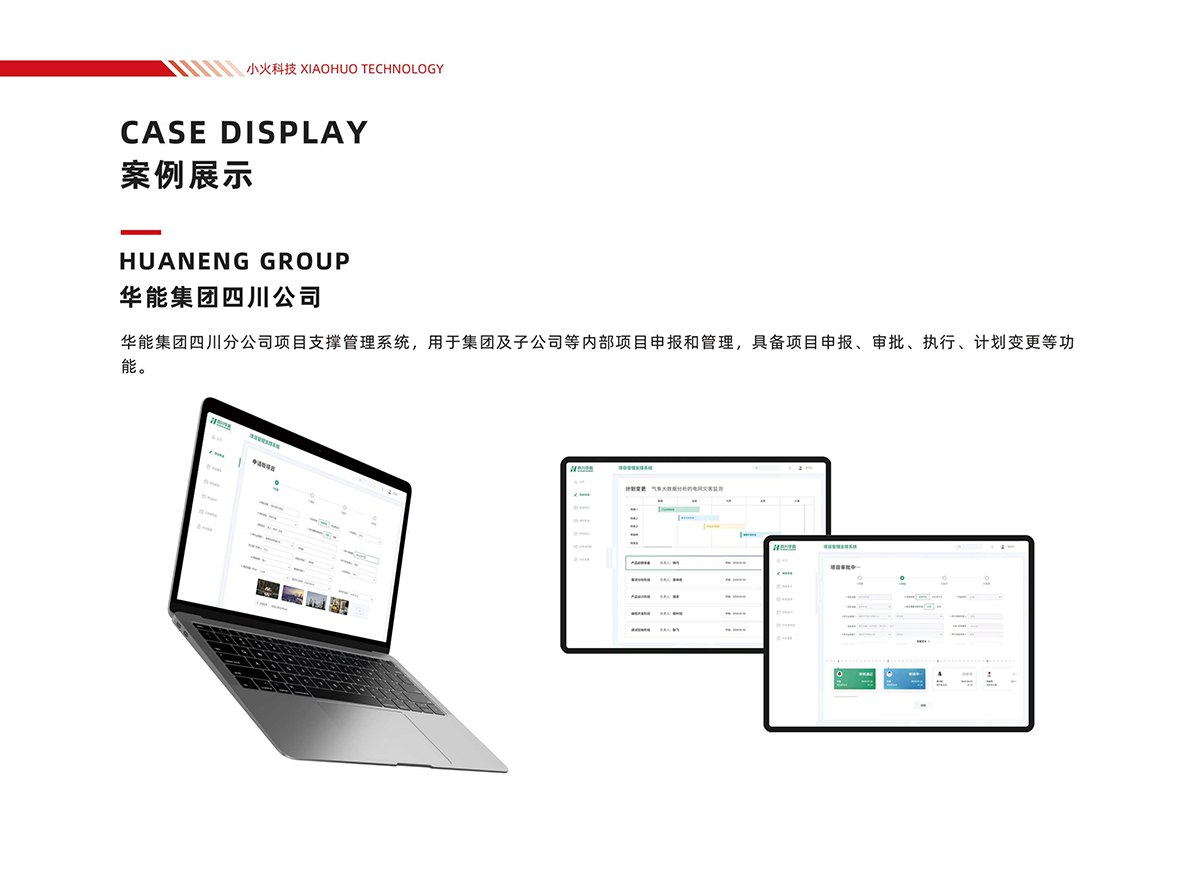 6. 华能集团四川公司:开发项目支撑管理系统,覆盖集团及子公司项目申报、审批、执行、计划变更全流程,实现内部项目规范化、数字化管理。