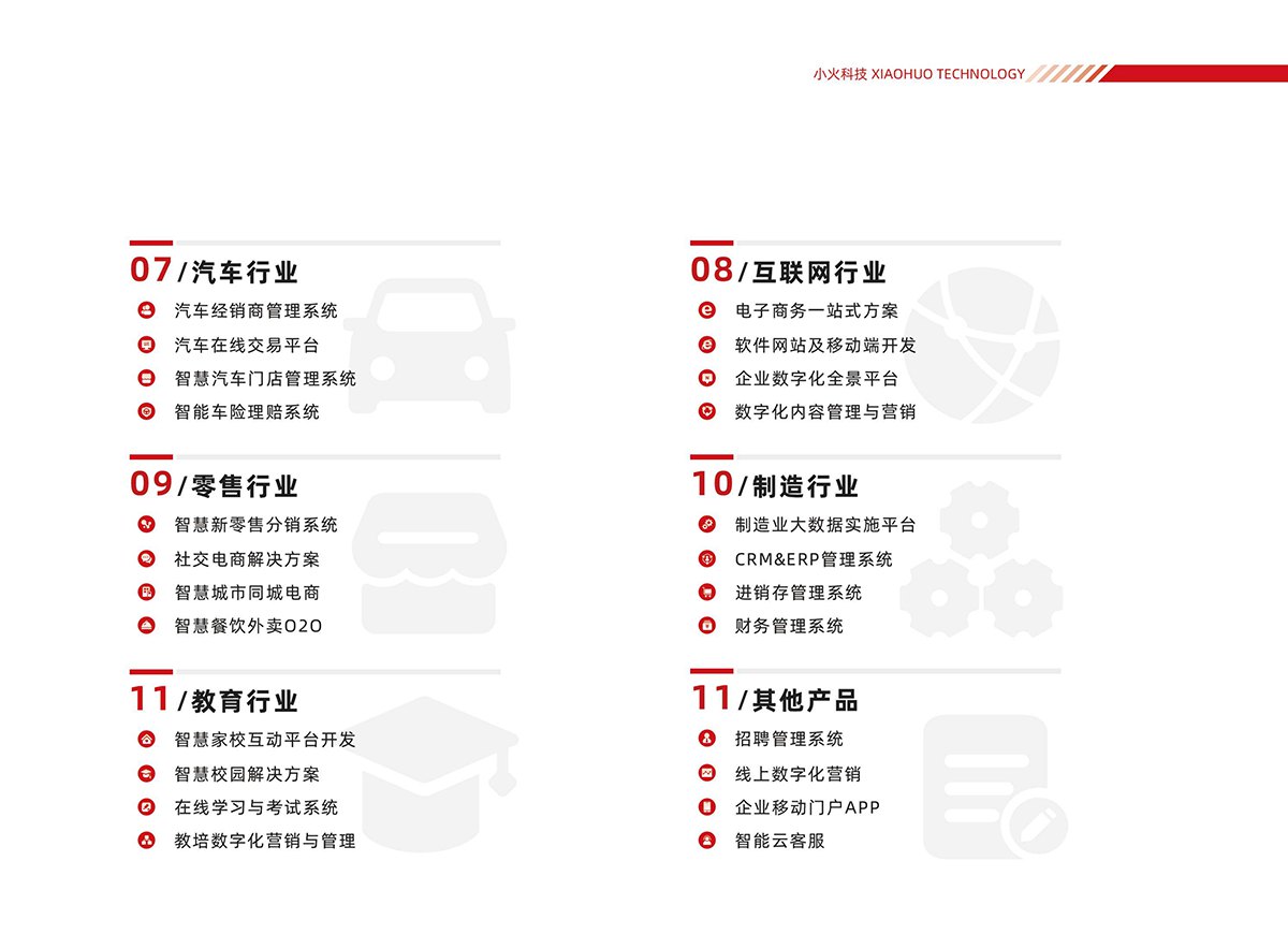 小火科技聚焦政企客户数字化转型需求,提供全流程互联网及数字化技术服务,核心业务覆盖多领域: