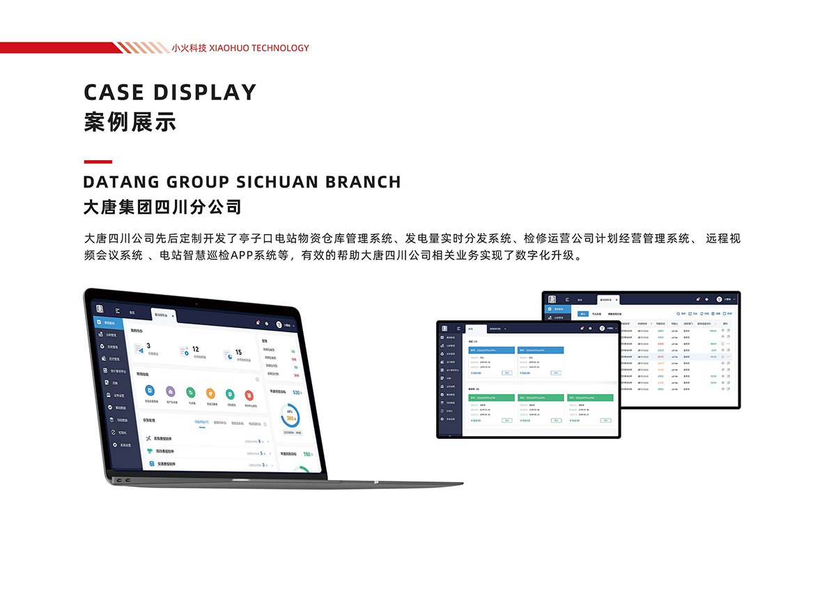 7. 大唐集团四川分公司:定制开发电站物资仓库管理、发电量实时分发、检修计划经营管理、远程视频会议、智慧巡检APP等系统,推动电力业务数字化升级。
