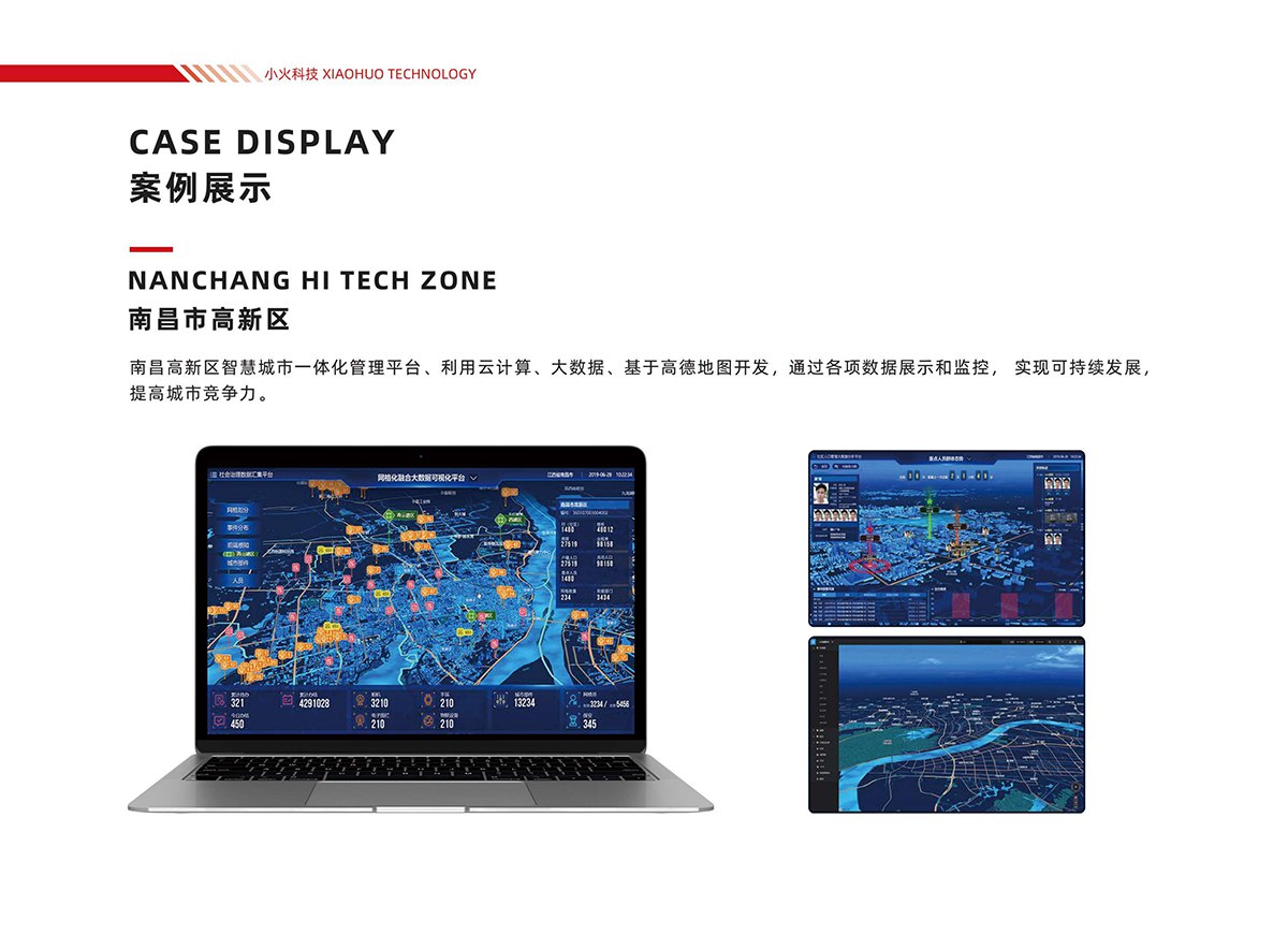 4. 南昌市高新区:开发智慧城市一体化管理平台,依托云计算、大数据及高德地图开发,实现城市各项数据可视化展示、实时监控,助力城市可持续发展与竞争力提升。