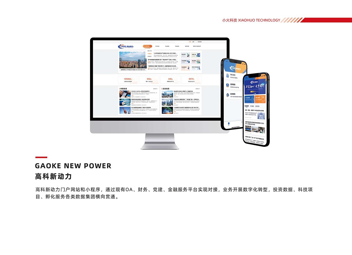 17. 高科新动力:开发门户网站与小程序,对接OA、财务、党建、金融服务平台,实现投资数据、科技项目、孵化服务等数据集团横向贯通。